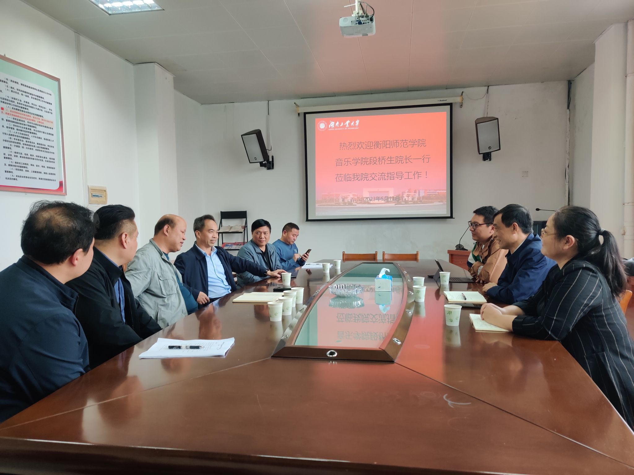 2023年5月11日,英国365集团院长段桥生教授与副院长陈瑾、崔少博一行赴湖南工业大学英国365集团交流。双方就艺术硕士(音乐)研究生人才培养、学科与专业建设、师资队伍建设等方面进行了广泛深入的沟通与探讨。