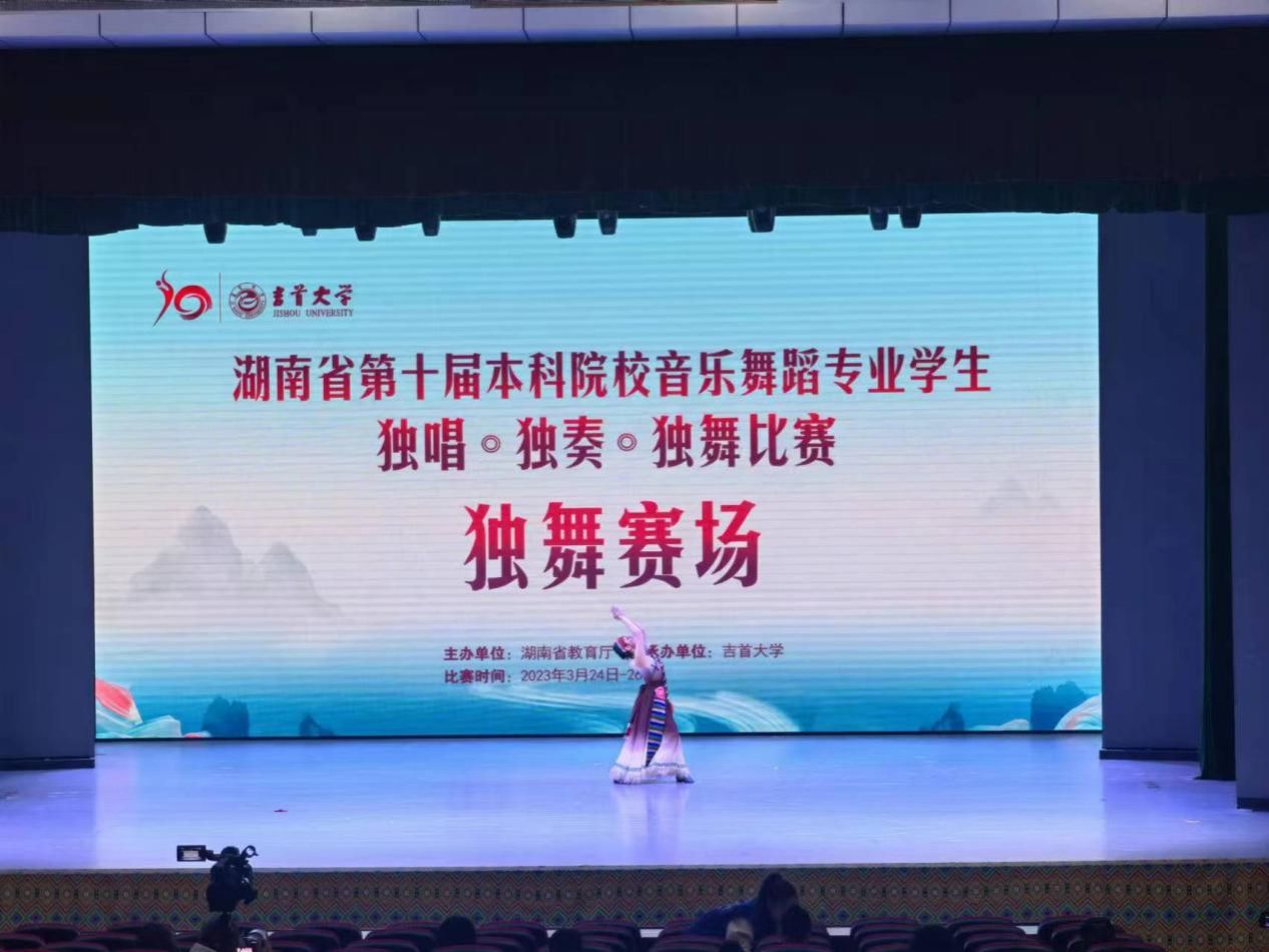 2023年3月26日,由省教育厅主办的湖南省第十届本科院校音乐舞蹈专业学生独唱、独奏、独舞(“三独”)比赛在吉首大学落下帷幕。经过三天紧张激烈的角逐,我院派出的参赛队伍获得3项一等奖、2项二等奖、4项三等奖的优异成绩。