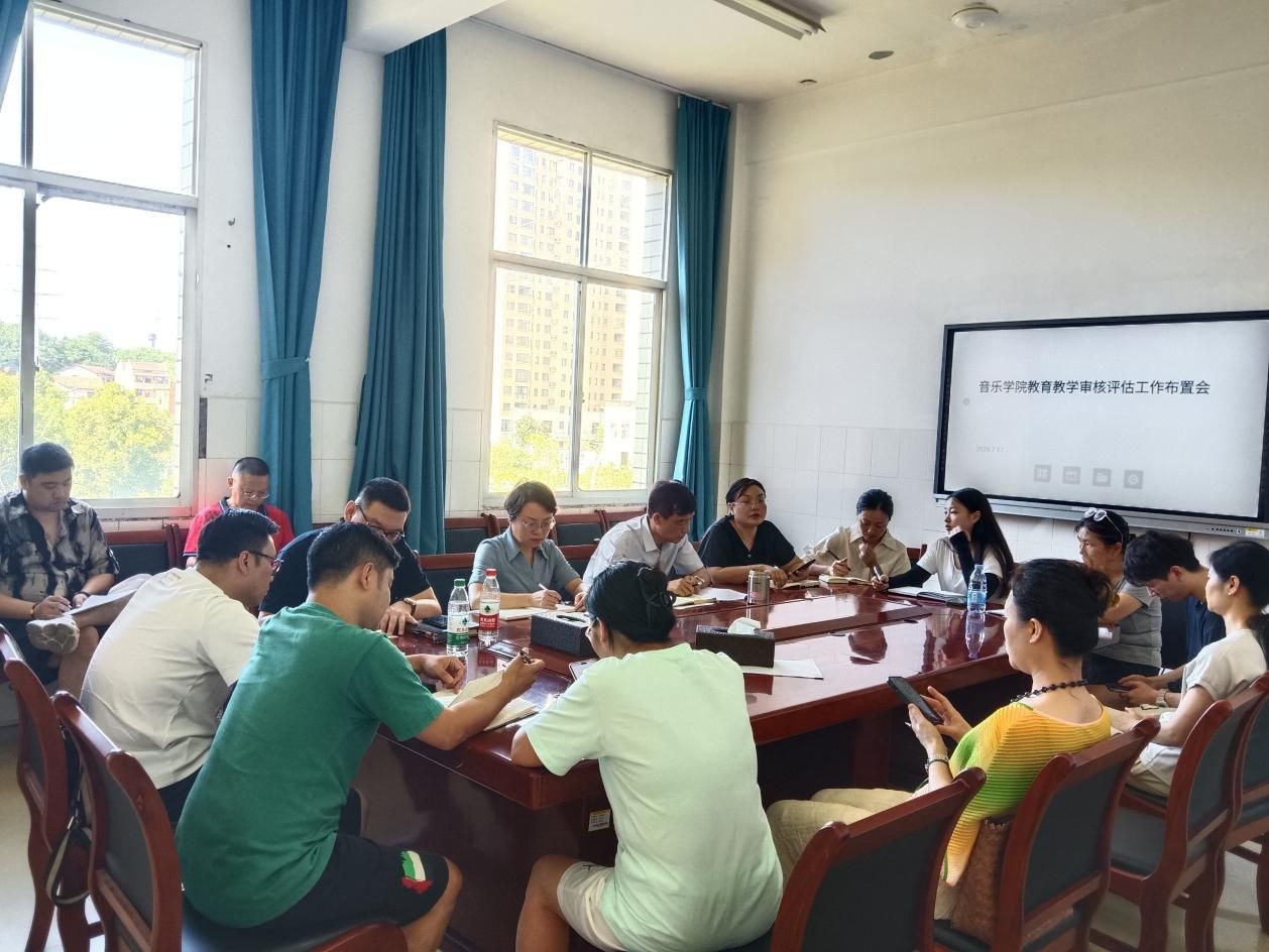 2024年7月17日上午,英国365集团教育教学审核评估工作布置会在音乐楼A313会议室召开,段桥生院长主持会议。