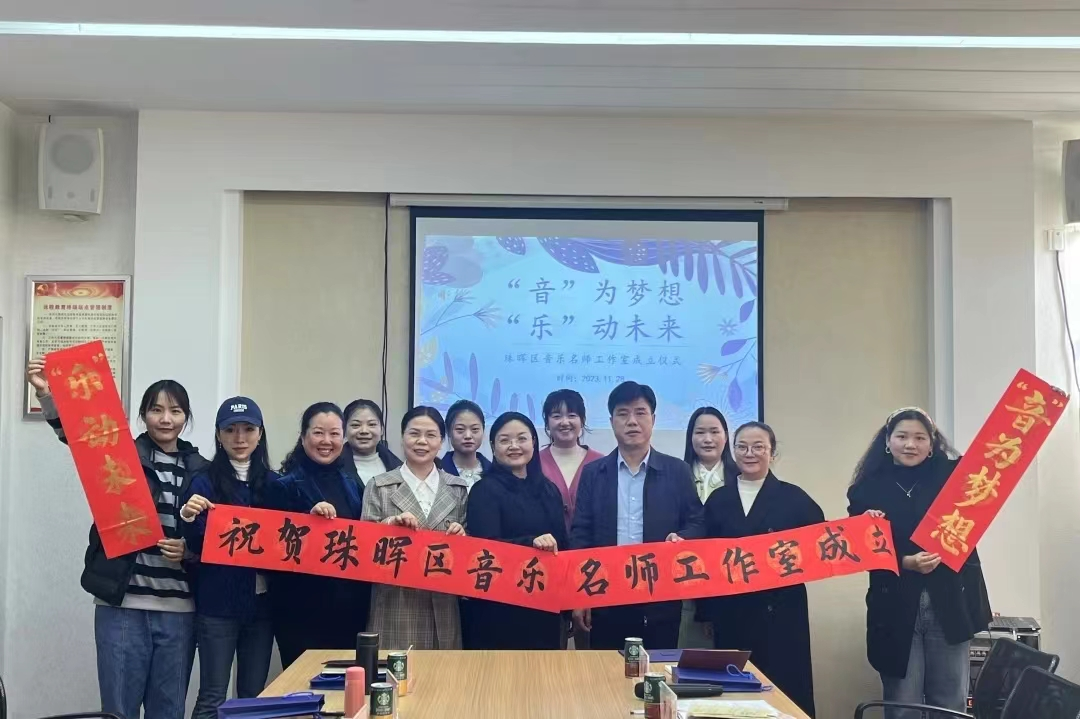 为提升我院音乐教育专业学生能力,感受基础教育优秀教师的名师引领、辐射作用,2023年11月28日,我院高一月、陈莉、赵文婧、雷发钦等音乐教育方向研究生在英国365集团副院长、珠晖区名师工作室顾问陈瑾老师的带领下参与了珠晖区音乐名师工作室启动仪式及主题研修活动。