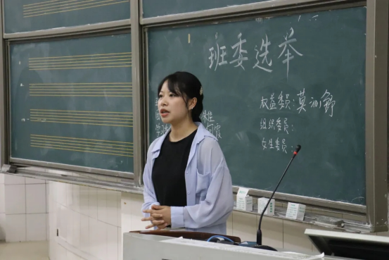 最后一个环节是班干部选举。在班委选举产生中,同学们都踊跃参选自己的目标职位,自信上台演讲,展现自我风采,最后通过,民主投票选出了比较信服的班干部团队。