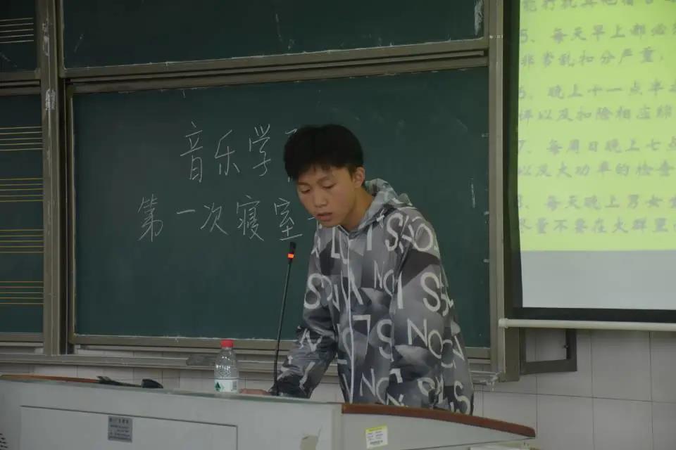 会议伊始男生部部长王鑫顺同学详细的介绍了本次第四届宿舍文化艺术节的活动目的、活动对象、活动时间与活动内容。接着便讲述了本次文明和谐示范宿舍与“四型”典型示范宿舍的具体评选标准与要求。最后向21级的新生同学们阐述了宿舍日常管理的各类要求并一一进行了举例。