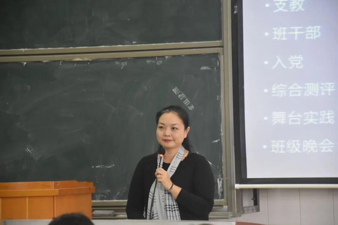 随后,陈副院长列出了23个大学四年关键词,并根据学生提问对采风、科研、实习、入党、考研、教资考试、舞台实践、班级晚会等关键词做出了详细解释。