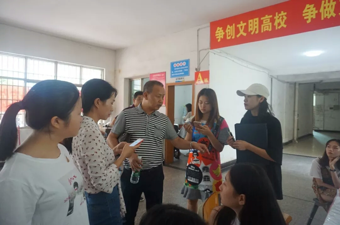 今日一大早,我院党总支书记朱志红就来到了我们的迎新点,在仔细地询问之后,朱书记对迎新志愿者的工作提出了进一步的要求:班导要清楚地掌握班上每一位新生的信息以及到校情况,并准确无误地向新生发放卡包及寝室钥匙等用品。