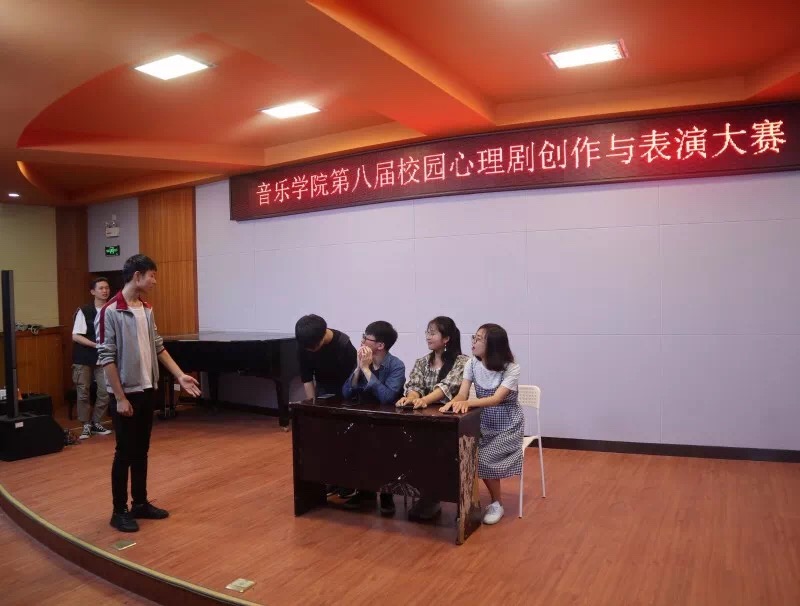 为了宣传普及心理健康知识,增强大学生心理健康调节能力,把大学生成长过程中遇到问题以情景剧的形式展示出来,启发同学们学会以积极乐观的心态和理性正确的方式应对压力和挑战。英国365集团于5月10晚在音乐楼汇报厅开展"心理健康月"系列活动之心理剧大赛初赛,初赛的评委分别是分团委学生分会主席黄烽、分团委副书记胡蝶、杨诗琪、副主席刘余君,参加此次比赛的有16级和17级各班参赛团队。