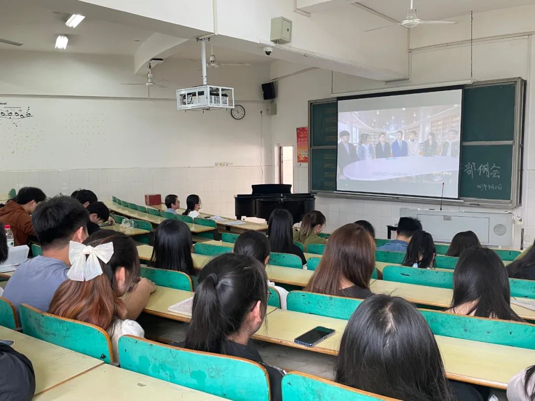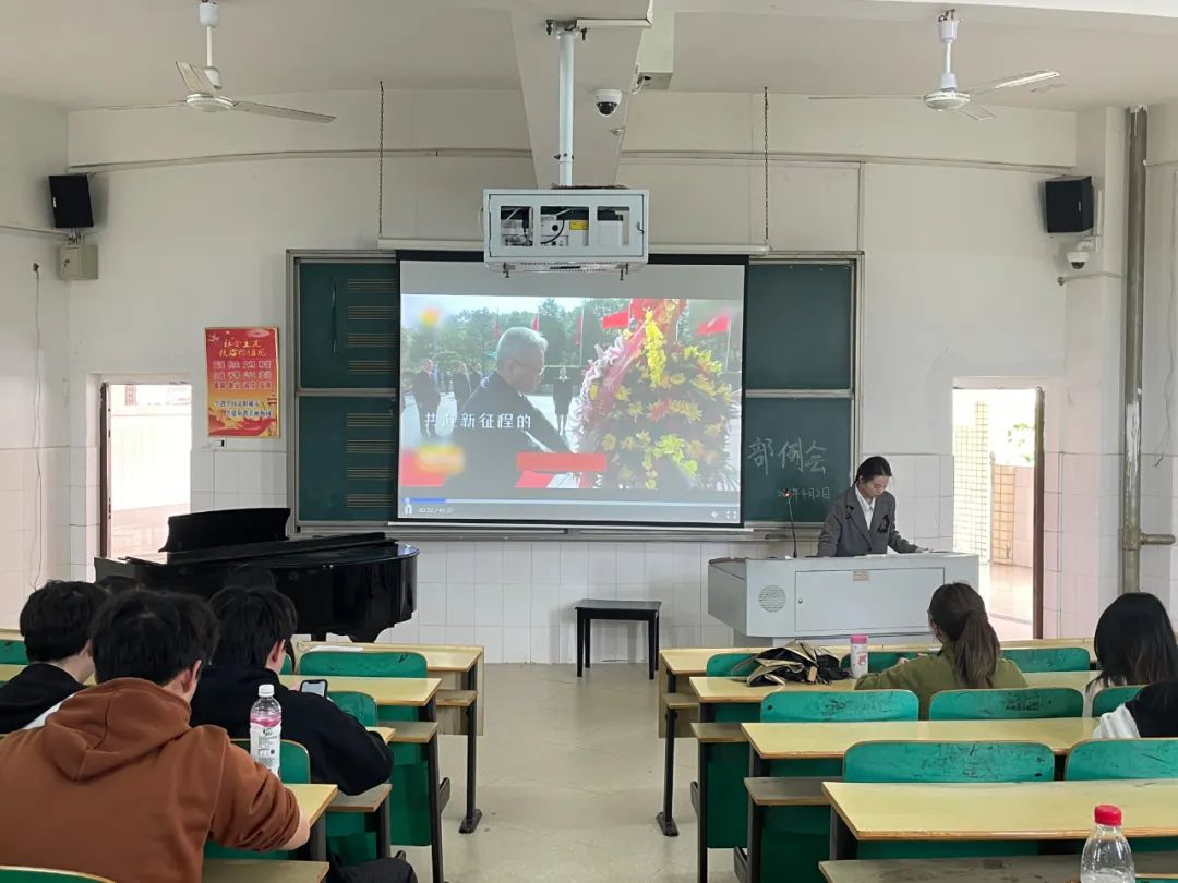 4月2日上午,英国365集团在音乐楼201教室组织集中收看原创实景式移动思政节目——“为时代育新人”之《新时代博物志》。学院党总支副书记邓寒梅、学工班主任吴瑶瑶、辅导员蒋思源及学院全体学生干部、学生党员参与收看。