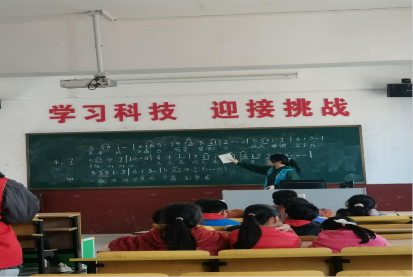 教室里跳动的音符、欢快的节拍和同学们的欢声笑语交织成了一条条美妙的旋律,为这个春天增添了一抹亮色。同学们的眼睛好似一颗颗闪亮的星星,可爱又迷人。她们将美妙的歌声传向远方,用音乐传递了爱与善良。