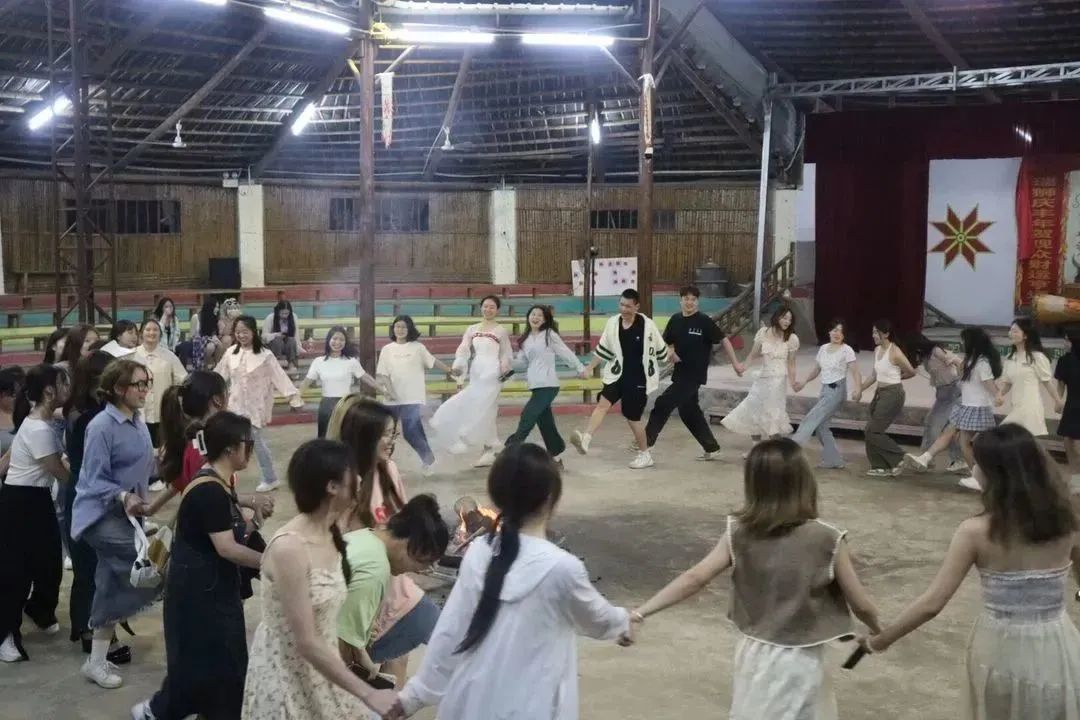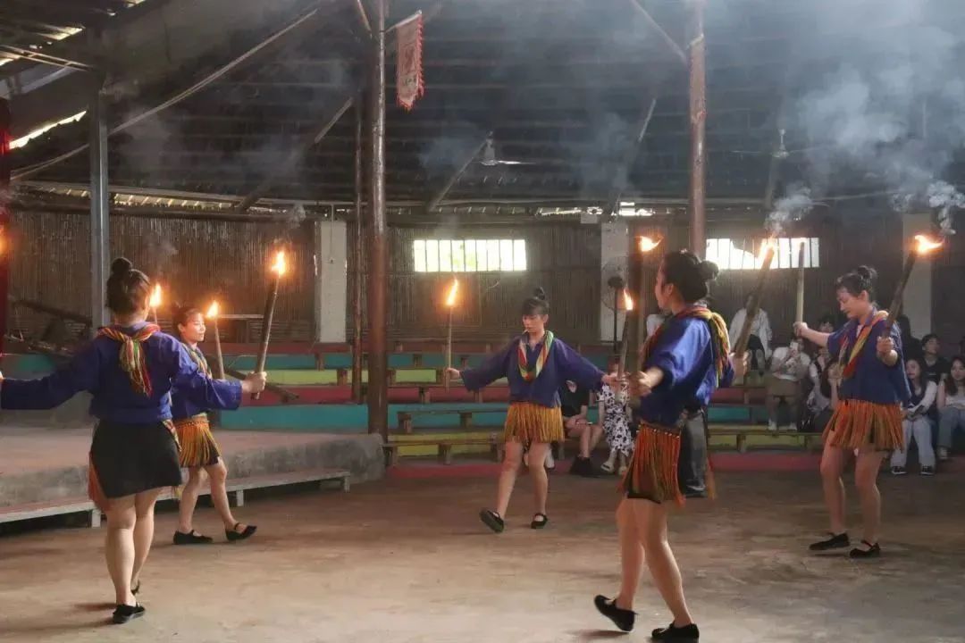 热情的瑶家姑娘跳着火把舞、竹竿舞,尽显民族特色。瑶族舞蹈文化交流结束后,我院师生也为大家带来了精彩的表演。