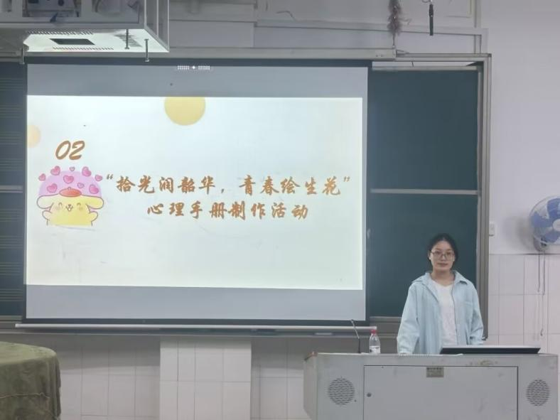 接着,心理健康部副部长刘晓慧对即将开展的“拾光润韶华,青春绘生花”心理手册活动进行介绍,要求活动主题突出,内容积极向上,鼓励大家大胆发挥想象力、积极创新,表达了对精彩作品的期待。随后,她向各班心理委员展示了往届优秀的心理手册作品。