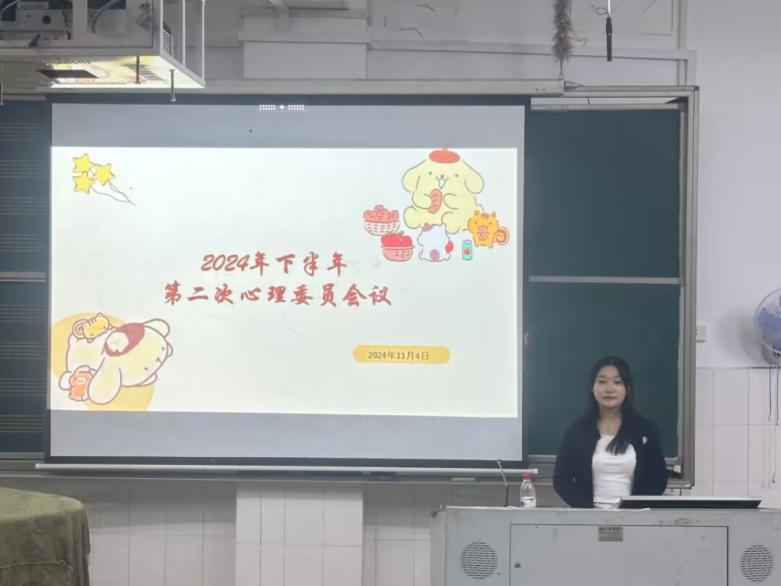 11月4日下午,我院于音乐楼203教室召开2024年下半年第二次心理委员会议。参会人员有心理健康部全体成员、2022级-2024级各班心理委员,本次会议由心理健康部部长唐佳乐主持。