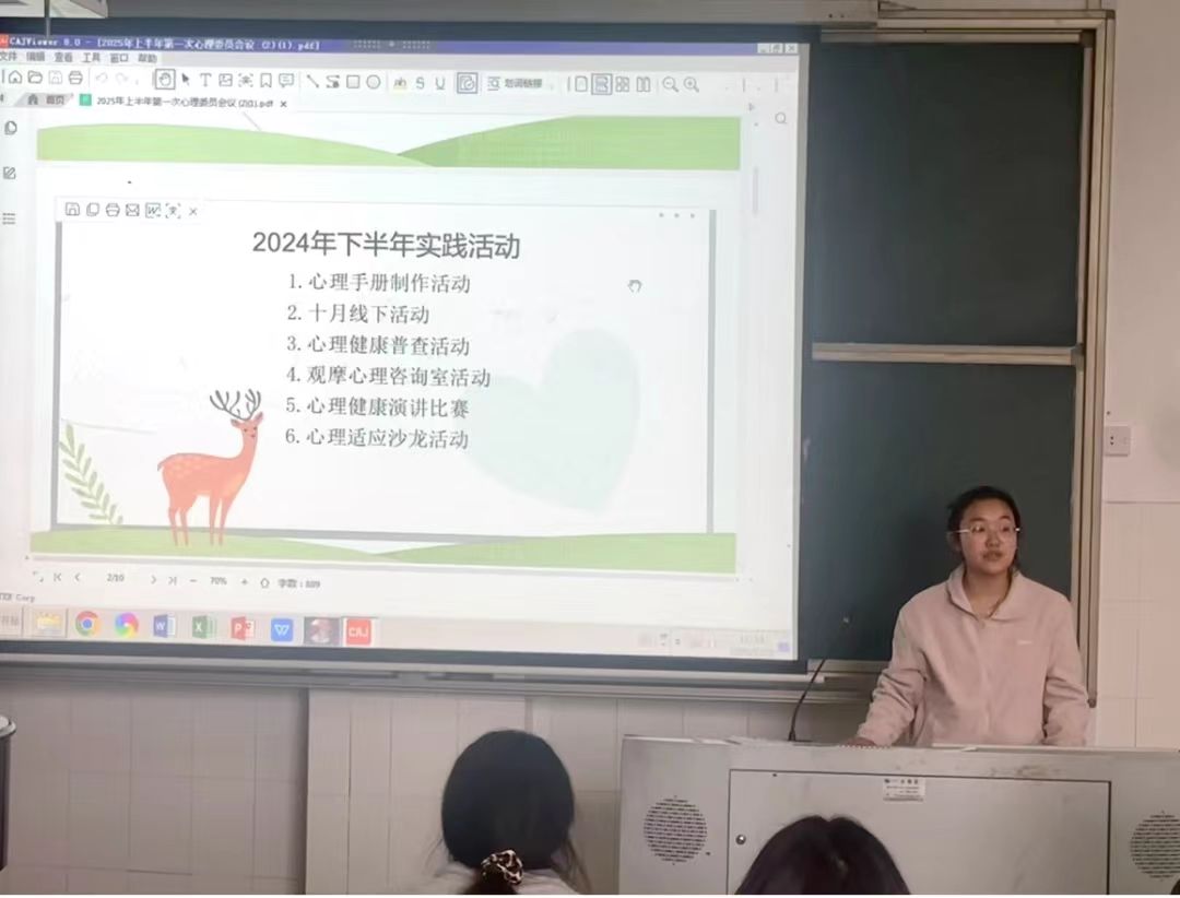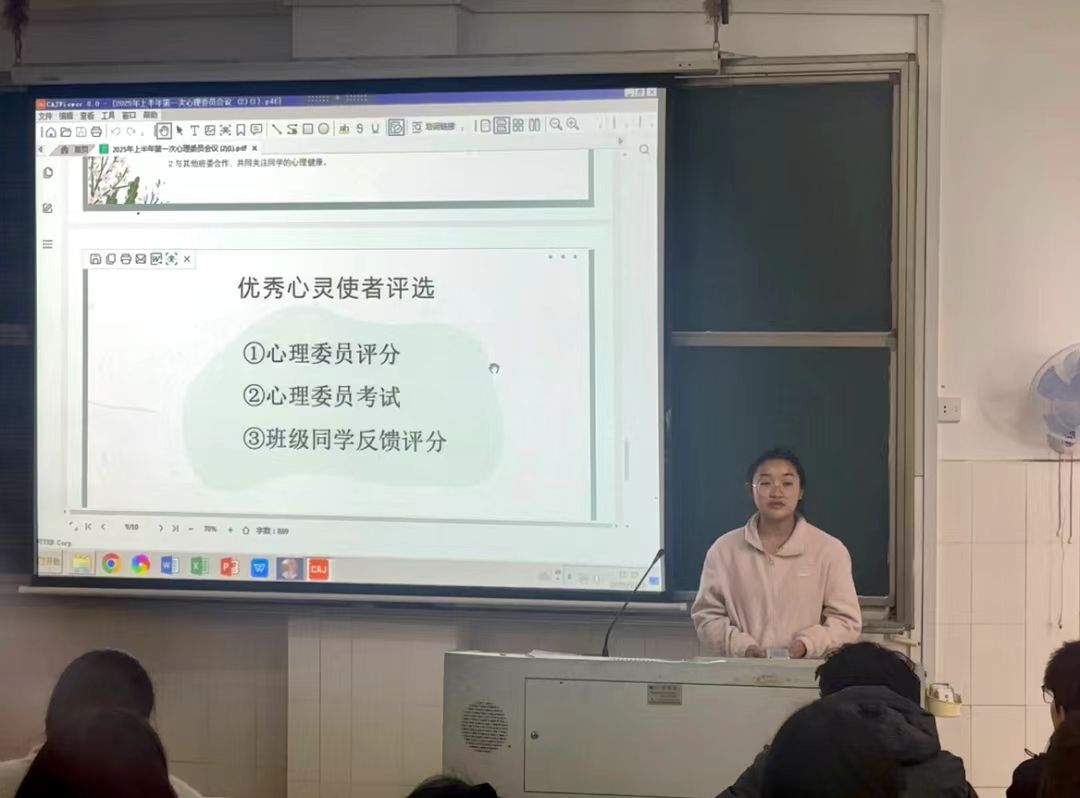 2月28日中午,我院于音乐楼203教室召开2025年上半年第一次心理委员会议,参会人员有心理健康部全体成员2022级-2024级各班心理委员,本次会议由心理健康部部长唐佳乐主持。