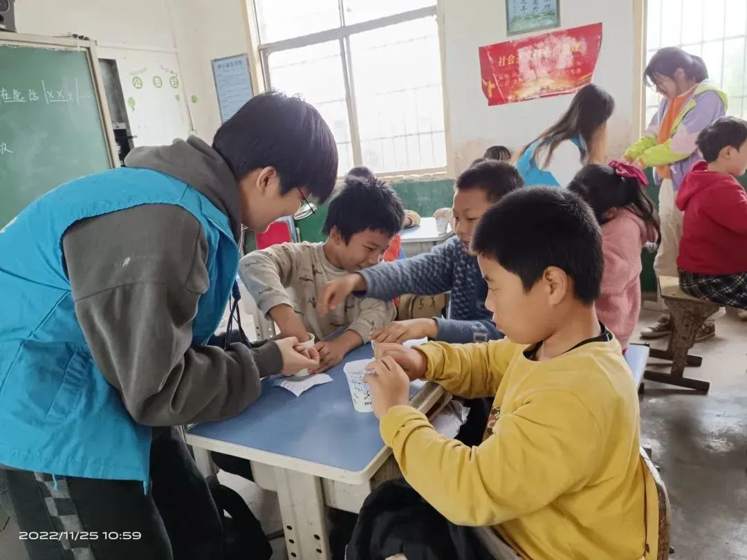 志愿者们都精心准备了教学活动,课堂上《友谊天长地久》的音频响起,同学们都沉醉在曼妙的旋律里,身体随着音乐的节拍律动。同学们看到志愿者在黑板上画出图谱,生动的图案将歌曲内容描绘的十分美好,同学们你一言我一语地表达自己对友谊的看法,音符交织成婉转悦耳的歌声,教室里勾勒出了冬日最温馨的画面。
