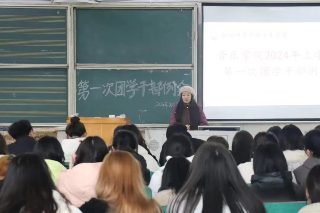 春风拂面,新的学期开始了。3月3日我院于音乐楼301召开了2024年上学期第一次团学干部例会。学院党总支副书记邓寒梅、学工办主任兼团委书记吴瑶瑶、辅导员蒋思源、唐世芳,团委学生会全体学生干部以及各班班长、团支书、学习委员参与本次会议。会议由吴瑶瑶老师主持。