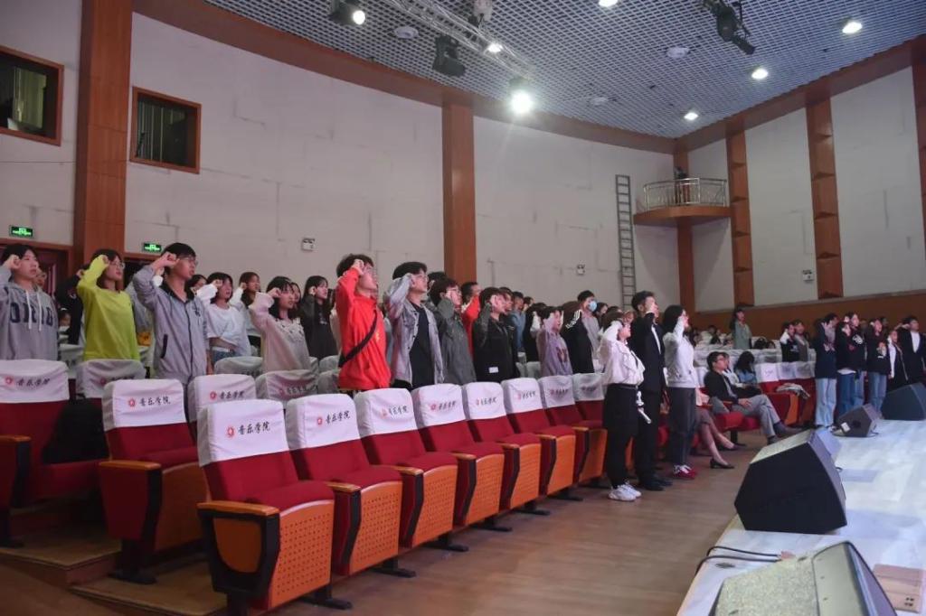 紧接着,20届分团委副书记刘漪带领全体学生干部宣誓。希望所有团学干部能够牢记誓词,把宣誓的内容认真实践到日后的学习与工作中。在学习工作中发挥先锋模范作用,为把团学会建设成为一个民主、团结、和谐的团队而努力奋斗!