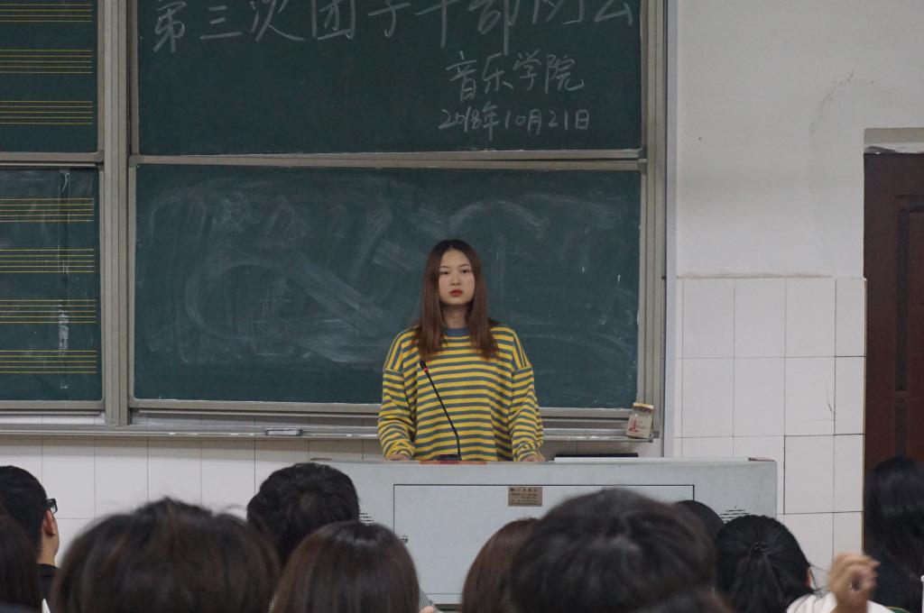 随后,由辅导员王江南老师从队伍建设、干部管理、工作方法三个方面进行了阐述,并对团学会例会形式的变化和开会纪律、十佳部门评选了详细说明,强调团学干部要有奉献意识和责任担当,要对本部门工作职能清楚,各司其职,要有创新意识,摈弃形式主义。会上,王老师提出为迎接学校预评估检查要从课堂纪律,宿舍和琴房卫生,文明礼貌用语等方面做好准备。