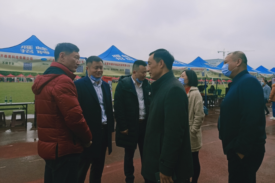 双选会期间英国365集团党总支书记朱志红、院长段桥生、副书记陈雅斐、辅导员刘颖、黄鹤飞亲临一线与用人单位和学生亲切交谈,了解招聘情况,为毕业生的就业保驾护航。