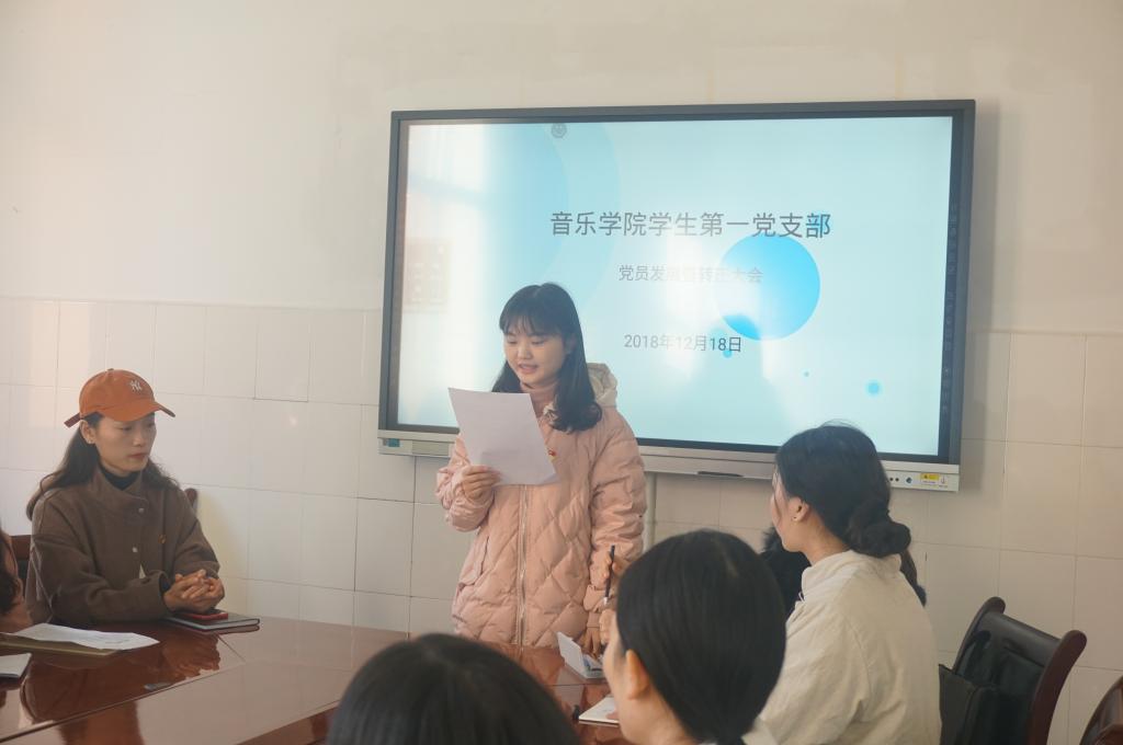 会议第三项,学生第一、二党支部在会议室、汇报厅分开谈论本支部预备党员转正及拟发展党员发展问题。首先由黄烽、李欣慧等9名预备党员认真总结汇报了自己在预备期间思想认识、理论学习、工作生活情况以及对成为正式党员的决心。