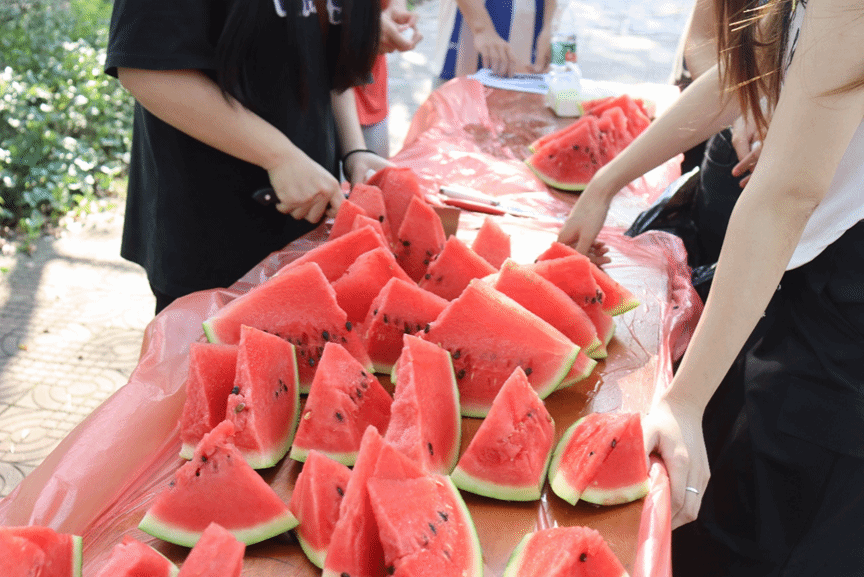 最后,学生党员们将一块块清凉的西瓜有序送到各位新生手中,希望能在炎炎夏日中给他们带来一丝清凉。当新生们拿到这些充满水分和甜蜜的西瓜时,脸上都乐开了花。他们纷纷表示,这个意外的惊喜让他们感到非常温暖和感动,同时也更加坚定了他们对党员的敬佩和对党的信任。