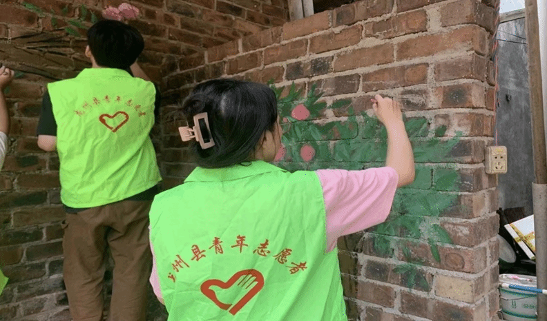 民族要复兴,乡村必振兴。为进一步改善家乡人居环境,助力乡村振兴和美丽乡村建设,学生党员们在当地相关部门的组织下参加墙绘志愿服务活动。他们根据墙绘样图,精心绘制,与同行的伙伴配合默契,你勾线来我涂色,借以颜料色彩绘出浓浓乡情,创作出一幅幅多彩的墙绘作品,将原本单调的墙面变成一道靓丽的风景线。