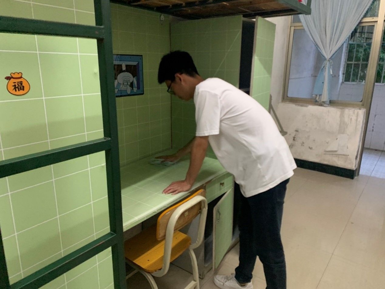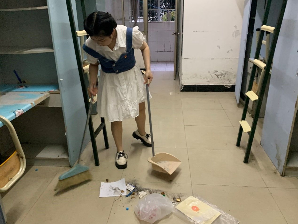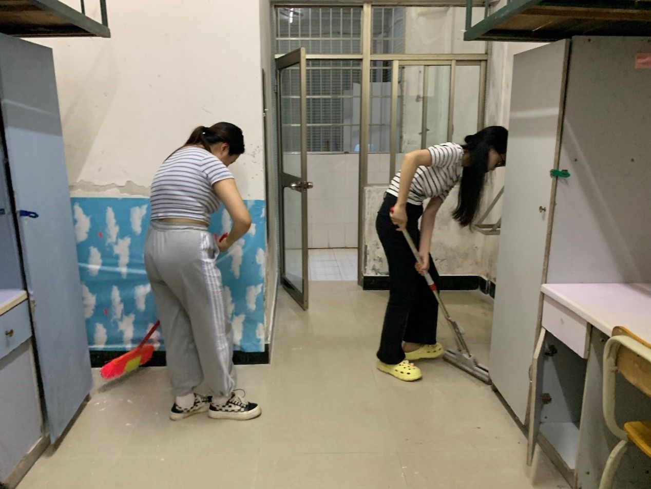 学生党员们两两分组,带着打扫工具来到自己对应的宿舍,对宿舍内的门窗桌椅,洗漱台,死角垃圾等地方进行了清理,大家相互合作,干劲十足,以劳动为荣,乐在其中,认真细致地打扫每个角落,确保卫生不留死角。