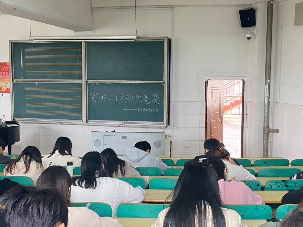 为深入学习贯彻党的二十大精神,我院于11月24日中午13:00在音乐楼201教室组织全体学生党员参加党的二十大知识竞赛答题活动。