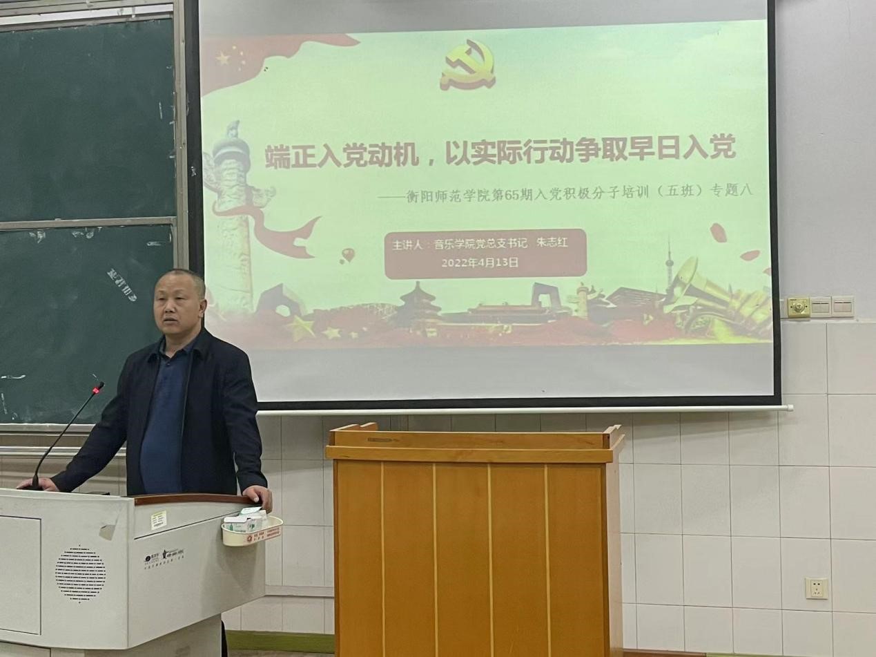 课程伊始,朱志红首先向现场学生提问:“为什么要加入中国共产党”,随后向大家介绍了五种错误的入党动机,并强调端正入党动机是争取入党的首要问题,所有的入党积极分子都应该仔细思考自己为什么要加入中国共产党。紧接着,朱志红给同学们讲述了正确入党动机的内涵、端正入党动机的主要途径、怎样正确认识和对待党员标准。朱志红谈到,入党的同志应该自觉接受党组织的培养、教育和考察,主动向党组织汇报自己的思想状况,积极参加党组织的活动,努力完成党组织交给的工作任务。最后,朱志红为同学们介绍以实际行动争取入党的途径,向全体入党积极分子提出了希望与要求,希望同学们能够自觉以党员的标准来严格要求自己,在日常的学习生活中用身体力行真正做到先锋模范作用,以实际行动争取早日加入党组织的队伍。