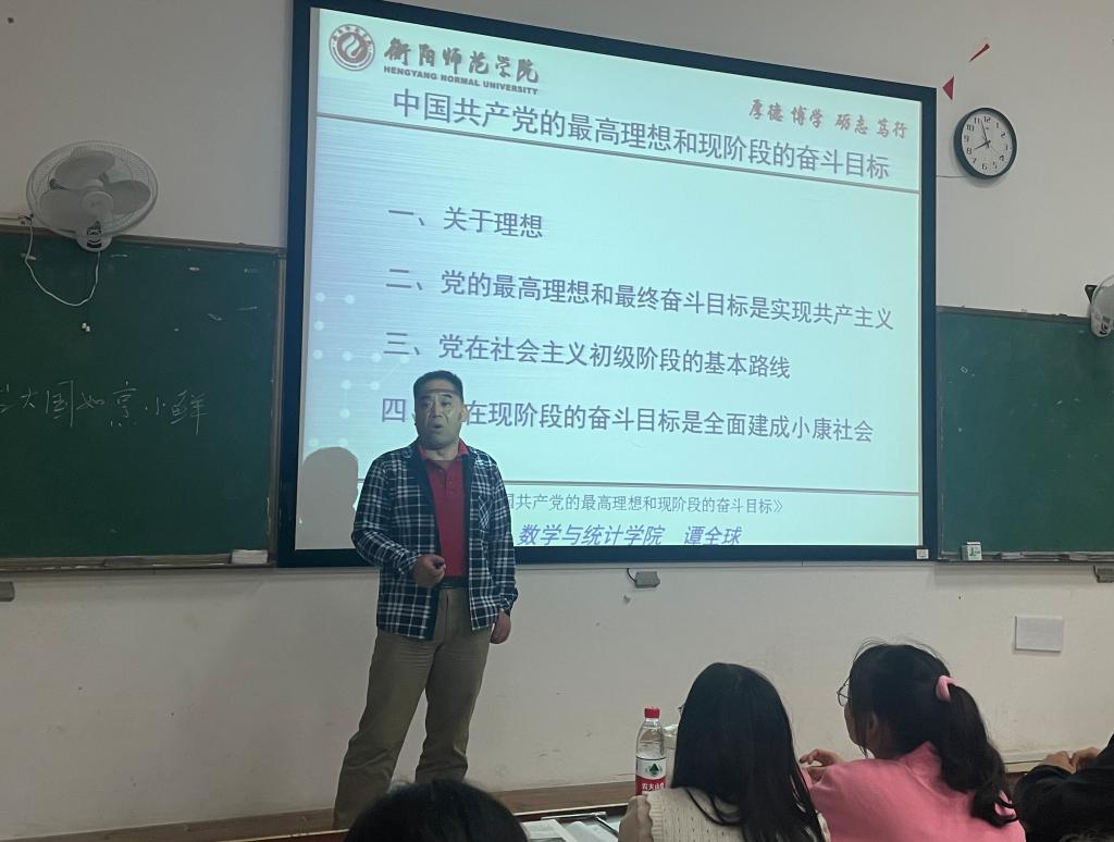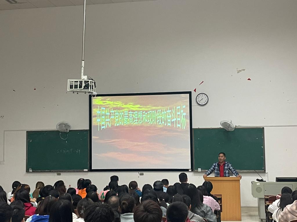 2021年10月18日晚19点30分,第64期入党积极分子培训班(五班)第一讲课于外语楼301教室顺利举行,我院53名入党积极分子参与培训。本次课程由数学与统计学院党总支副书记谭全球同志主讲,主讲内容为“明确党的纲领,为实现最高理想和现阶段目标努力奋斗”。