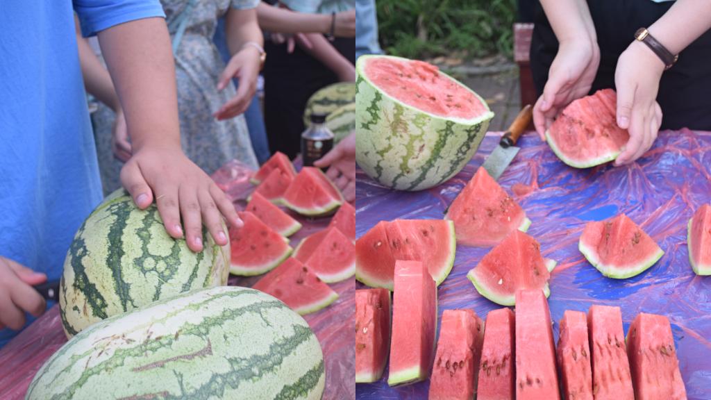 最后,学生党员们将西瓜有序分发到21级新生的手中,希望在这个炎炎的烈日里能带给他们一丝清凉。
