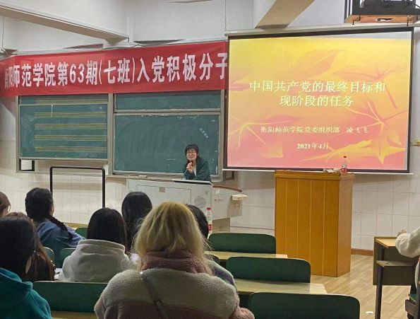 2021年4月19号晚19点30分,我院于音乐楼301教室举行了第63期入党积极分子培训第十讲--“明确党的纲领,为实现最高理想和现阶段目标”。本次培训由党委组织部副部长凌飞飞同志主讲。