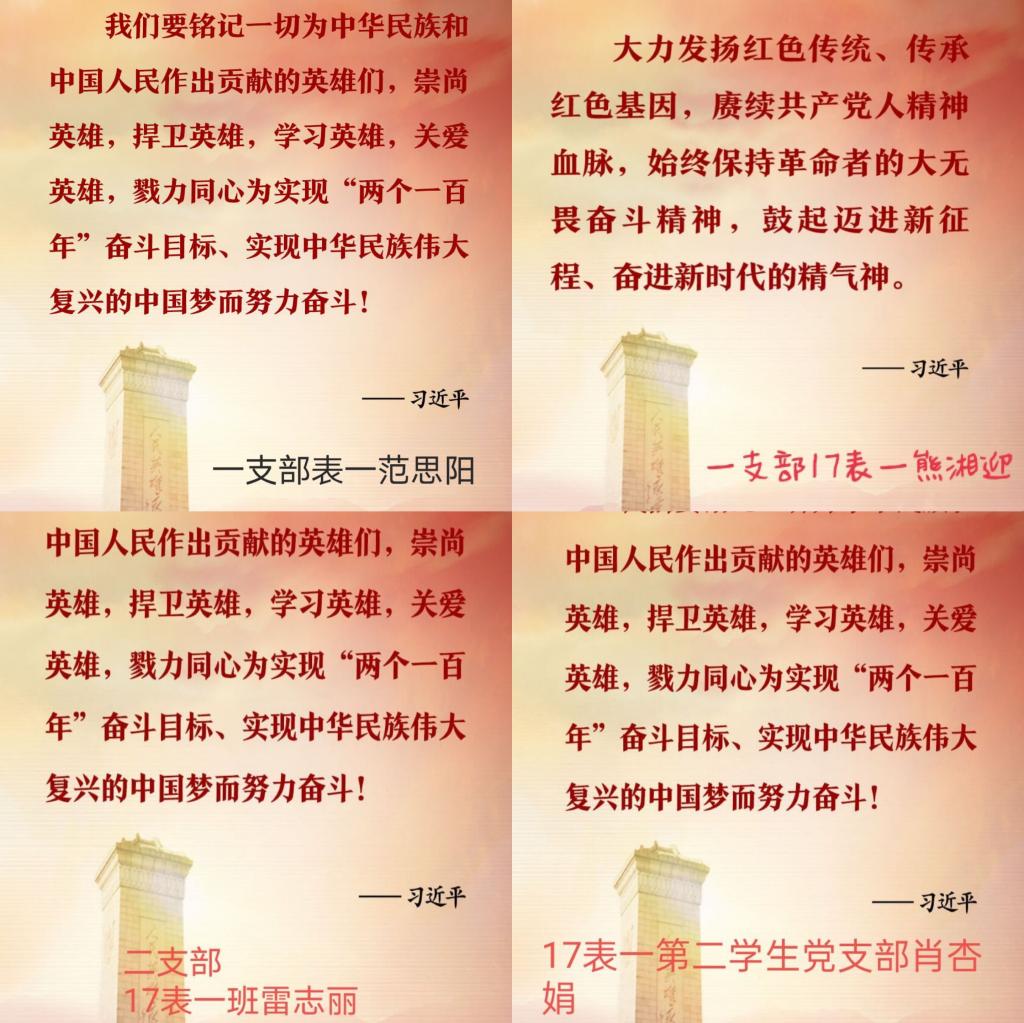 本次党日活动分为两项内容,第一项是网上祭英烈活动。在院党总支的组织下,全体学生党员在清明假期间登录中国文明网,进行2021网上祭英烈活动,大家都有感而发抒写寄语,纷纷为革命烈士送上最真诚的问候。在抒写寄语过程中,党员们进一步感受了革命先烈的坚定信念和不怕牺牲、顽强拼搏的崇高精神,接受了一次深刻的爱国主义教育。