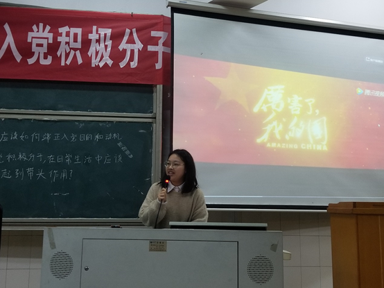 本次培训的第二项内容是观看爱国主义影视片。蒋思源老师组织入党积极分子观看了影片《厉害了,我的国》。该影片集中反映了十八大以来中国在经济建设、科技发展、环境保护、医疗服务、脱贫攻坚、教育投入、养老保障、国防军事、内政外交等方面取得长足发展和辉煌成就。影片用“圆梦工程”带来的获得感向同学们体现了人民有信仰、民族有希望、国家有力量。同学们沉浸其中,感受到了祖国的伟大。