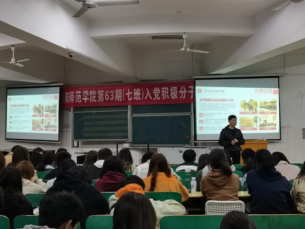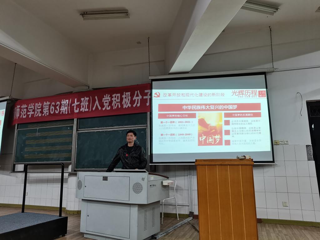 2021年4月6日晚19点30分,我院于音乐楼301教室举行了第63期入党积极分子培训班(七班)开班第一讲课。本次入党积极分子培训班(七班)由英国365集团分党校承办,从学校党校聘请了八位兼职教师担任主讲嘉宾。第一讲课由体育科学学院党总支书记胡建忠同志担任主讲人,主讲内容为“学习光辉党史,沿着中国特色社会主义道路前进”。