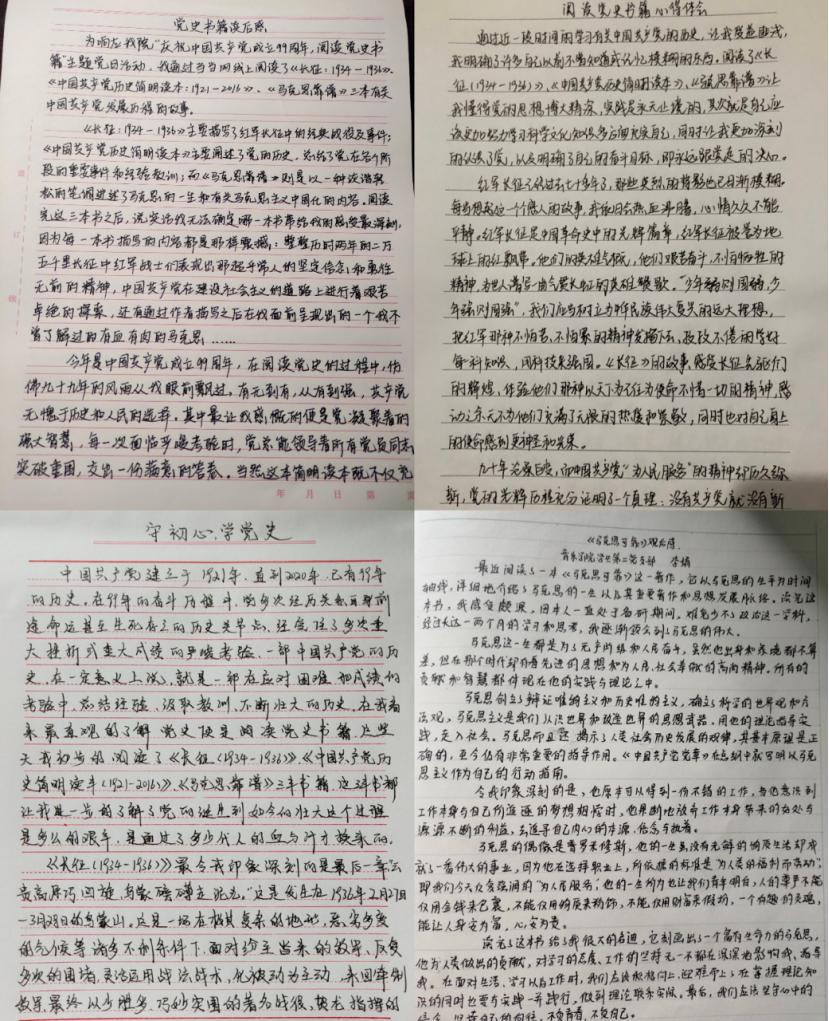 在活动期间,我院各学生党员同志于线上阅读了《长征(1934-1936)》、《中国共产党历史简明读本(1921-2016)》以及《马克思靠谱》等三本党史书籍。使他们详细了解了中国共产党发展的历史框架,感受了红色经典的厚重内涵,体会到燃烧着热情与信仰的时代。并且对当时艰苦环境下各位革命先辈为国家、为民族英勇奋战的担当精神感到敬佩。