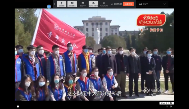 为庆祝中国共产党成立99周年,7月1日上午9点,我院党总支组织全体学生党员在线上APP钉钉上以视频会议的形式共同观看了高校党组织战“疫”示范微课堂“七一”专题的直播,学习党课精神,传递战“疫”榜样力量。本次示范微课堂由中国人民大学、复旦大学、西安交通大学、北京科技大学等高校党委书记、院士、基层党组织书记、党员师生联合开讲。