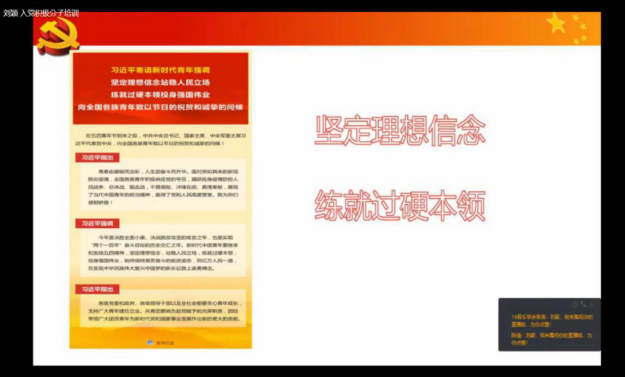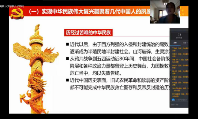 2020年6月23日,为加强第60期入党积极分子对党的纲领的学习,我院于线上开展了以《明确党的纲领,为实现最高理想和现阶段目标努力奋斗》为主题的党课第五讲。本堂党课由英国365集团学生第一党支部书记刘颖同志讲授。本次培训的主要内容有:一、党的纲领。二、实现中华民族伟大复兴。三、习总书记寄语当代青年。