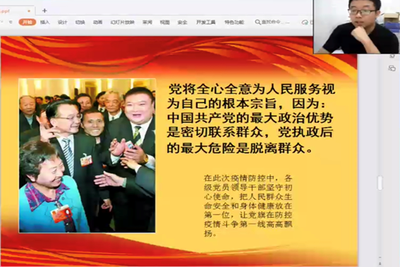 中国共产党的思想历程孕育了马克思主义中国化的道路,推动了中国革命、建设、改革的进行,促进了社会主义道路蓬勃发展。为了让同学们对党有更深刻的认识与体会,在党的指引下克服困难、开拓进取、与时俱进。我院于2020年6月22日晚七点半,在钉钉线上app举行英国365集团第60期入党积极分子培训第四讲。本次党课培训主讲人是英国365集团第二党支部书记黄鹤飞。培训的主要内容有:一、中国共产党的性质,二、党的根本宗旨。