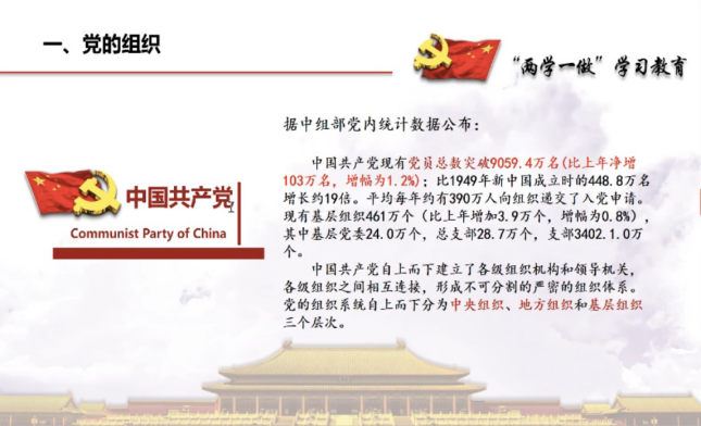 陈书记向同学们展示中国共产党现正式党员相关数据