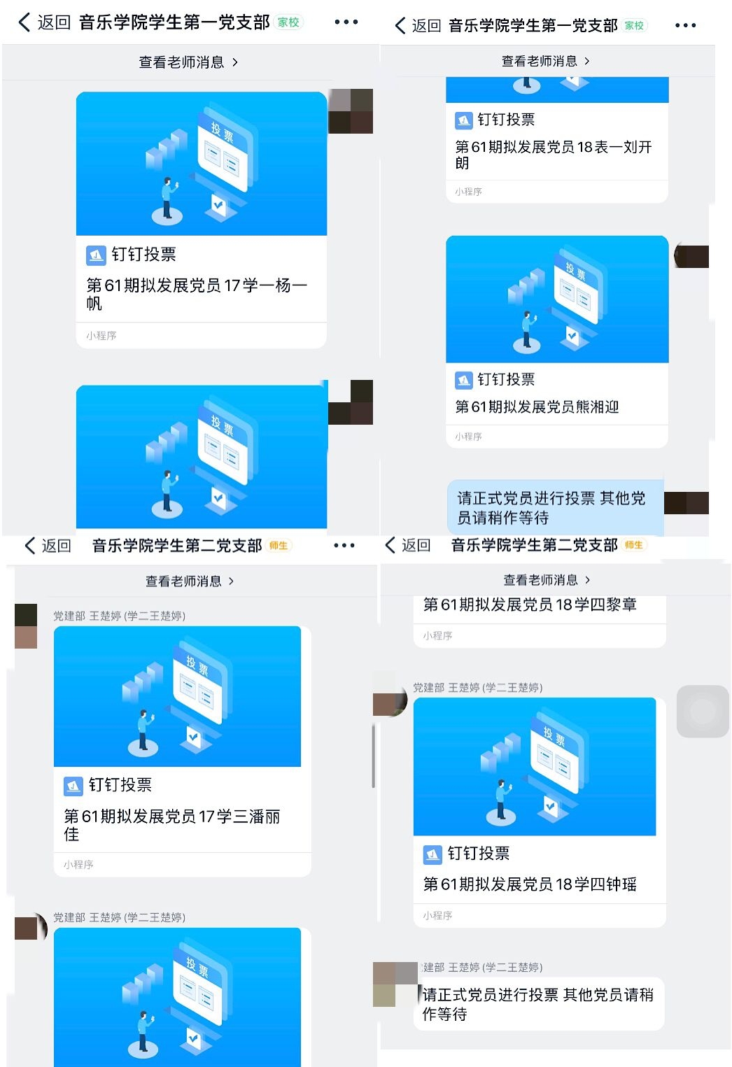 按照正式流程,刘老师、黄老师首先对各自支部就此次线上会议的到会情况进行了通报,并向大家交代了此次会议的主要目的——讨论杨玲莉、刘漪等13名拟发展党员的发展问题。之后两支部的拟发展党员们从思想工作、学习表现等方面依次向党组织进行了深刻的自我剖析,并坚定的向党组织表达了自己入党的态度和决心。