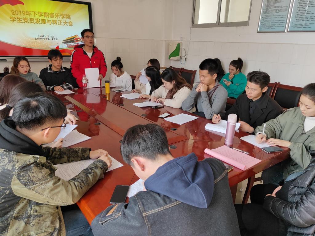 会议第二项,学生第一、二党支部分别在三楼会议室和音乐楼汇报厅讨论了本支部预备党员的转正问题。首先由张妍、文润聪等8名预备党员结合自身实际,并有针对性的从思想认识、理论学习、生活等方面进行了详细的介绍和总结。