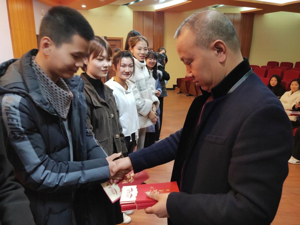 会议第四项,由陈书记为此次发展的预备党员颁发党徽,朱书记颁发政治生日贺卡。