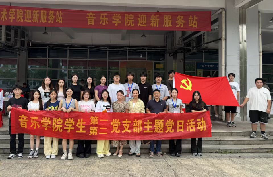 为了践行党员“全心全意为人民服务”的根本宗旨,发挥党组织的关怀、温暖和先进性,增强新生对党的认同感和向往之情。2025年9月7、8日新生开学报到之际,音乐学院学生党支部设立党员服务台开展“党员迎新生,服务暖人心”主题党日活动,助力本次迎新工作。