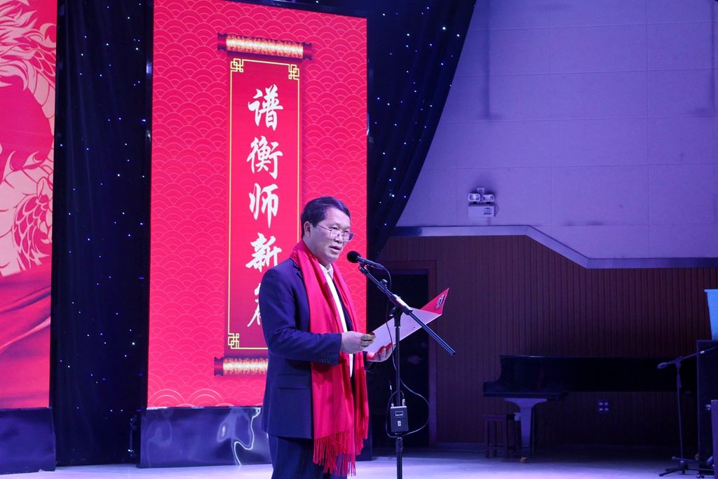 12月28日晚, 2024年“传百廿薪火 谱衡师新篇”元旦晚会暨2023年“榜样的力量”大学生年度人物颁奖典礼在东校区音乐楼演艺厅盛大举行。校党委书记陈晓飞以及在家校领导与师生代表共享国潮盛宴,共度美好夜晚。