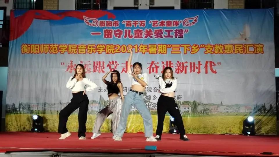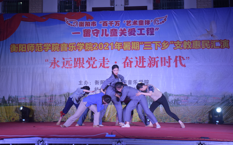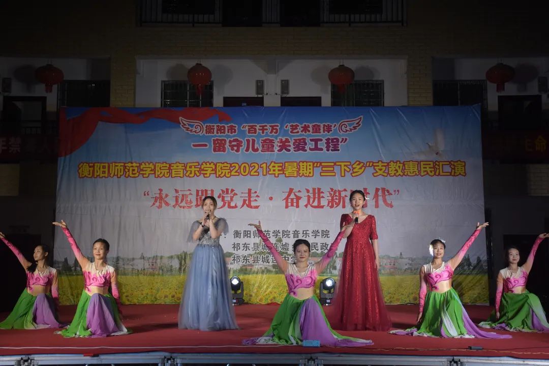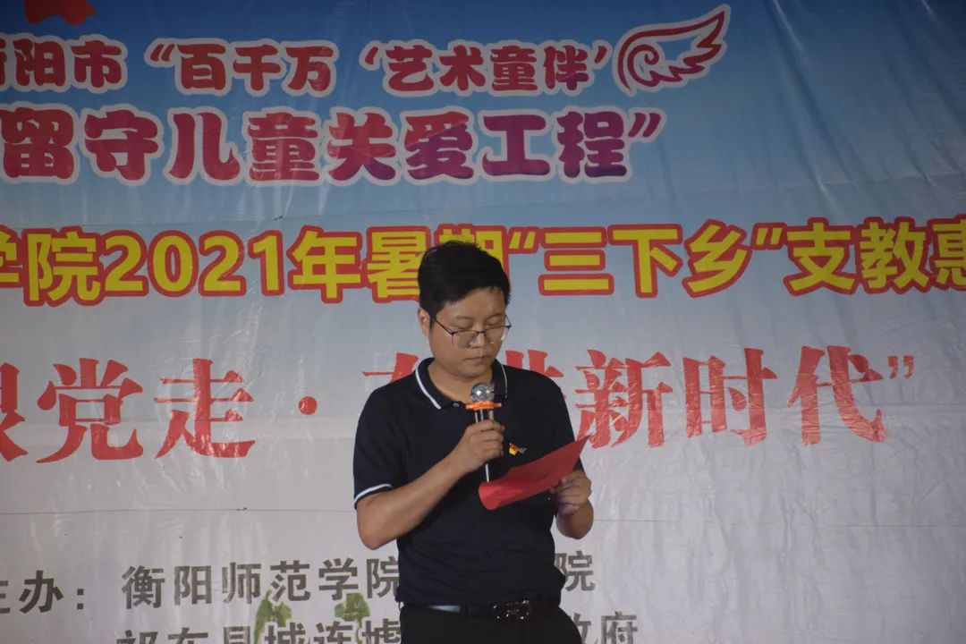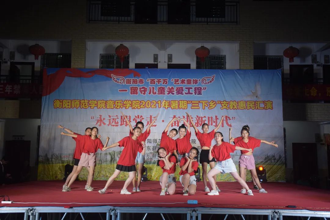 2021年7月12日晚,英国365集团三下乡支教惠民汇演于城连墟乡隆重举行。莅临本场汇演的领导嘉宾有衡阳师院英国365集团党总支书记朱志红、党总支副书记陈雅斐。祁东县委宣传部一级主任科员周建桥、祁东县城连墟乡党委书记胡文波、祁东县城连墟乡乡长罗映、祁东县教育局青少年学生校外活动中心负责人周斐、祁东县城连墟乡党委副书记陈志红、祁东县城连墟乡人大主席周盛红 、祁东县城连墟乡教管办主任李仁秋。