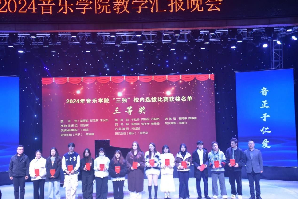 三等奖美声组:莫展家、彭浩东、朱汉杰民族组:李佳林、田颖桐、石妮艳通俗组:曾娉婷、陈诗佳器乐组:曾璐钢琴组:杨智尊、张宇琴、曾思懿舞蹈组:叶益伽、王可、邢馨心研究生组:陈雯静、银若辛